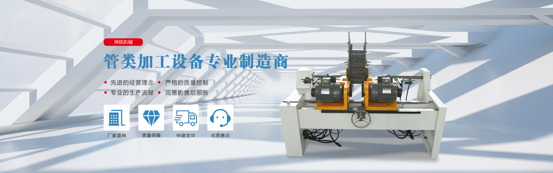公司產品廣泛應用于汽車、摩托車、自行車、童車、石油化工、水暖衛浴等行業,是各種管材、型材的切管、縮擴、彎曲、鉚接的加工理想機械。